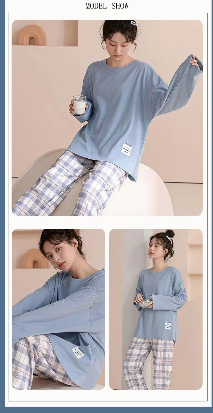 Korean Style Plaid Pajama Set – Long Sleeve Loungewear