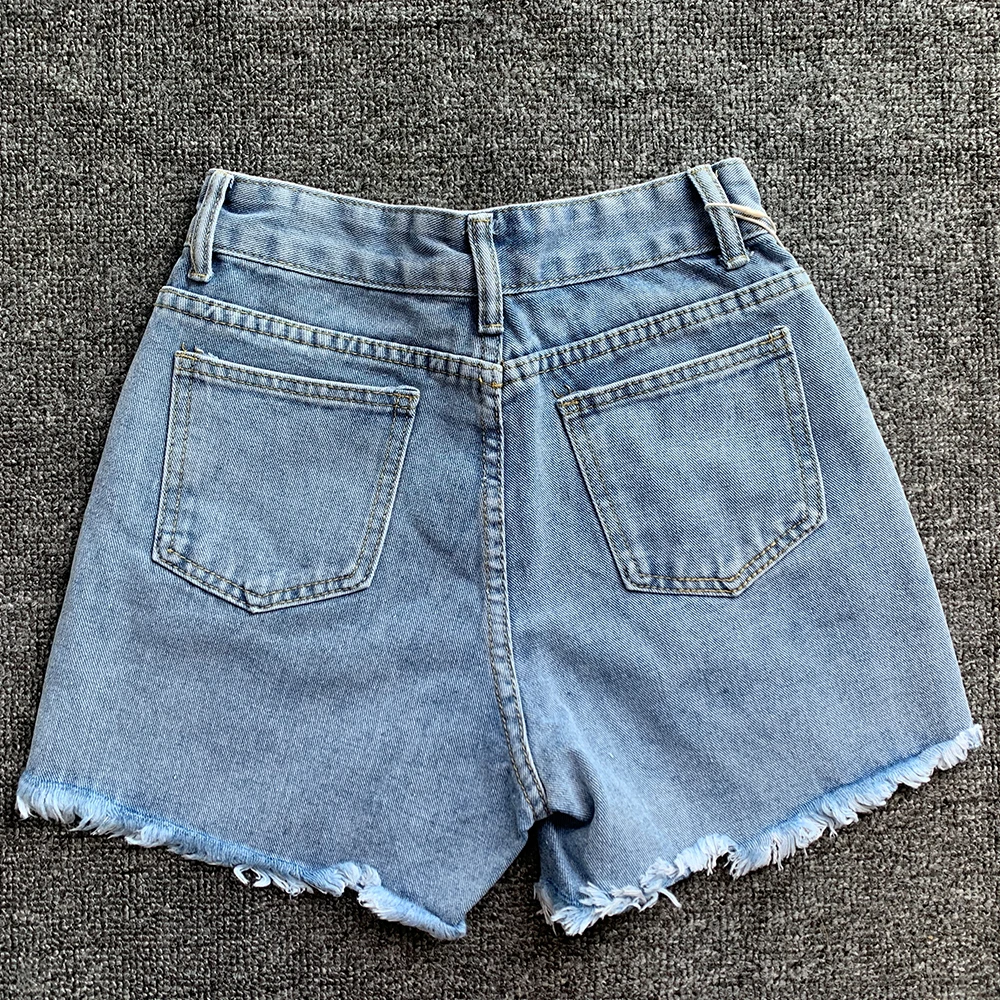 Korean Summer Y2K High-Waist Wide-Leg Knee-Length Jeans – casual style with light distressed wash, soft non-stretch cotton blend fabric, and zipper fly. Perfect for daily wear, street looks, or summer outings.